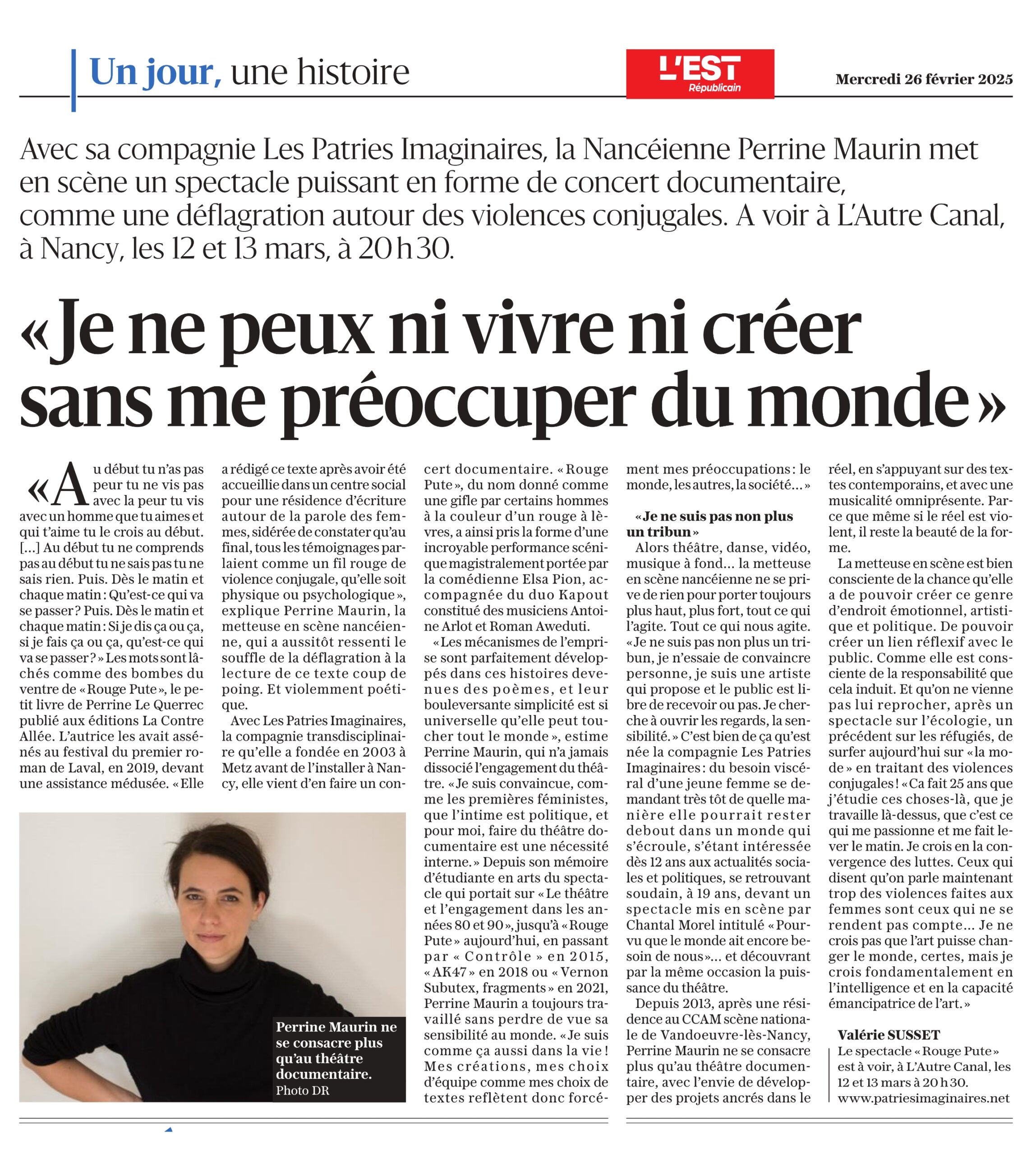 Un article dans l’Est Républicain suite aux premières de Rouge Pute à L’Autre Canal
